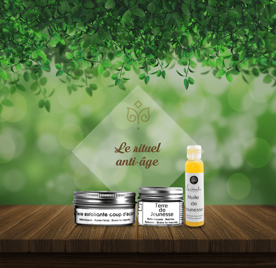Les soins anti-âge prennent en compte le temps de fabrication d’une nouvelle peau de 21 jours. La Terre exfoliante coup d’éclat et la Terre de jeunesse s’appliquent une à deux fois par semaine pendant cette période de régénérescence de la peau. Espacer tous les applications tous les 15 jours en entretien. L’Huile de Jeunesse s’utilise tous les soirs comme un soin de nuit, qui dispense tous les matins de mettre une crème de jour.